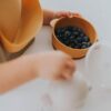 The D|G Bowls are super easy to clean! You can wash them with soap and water or you can pop them in the dishwasher(top rack only)!